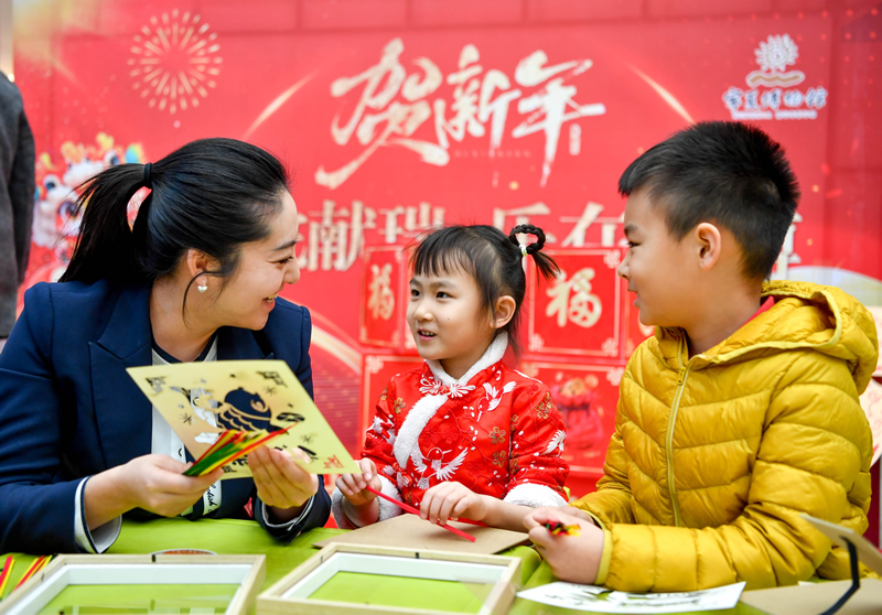 节日期间,小朋友们在宁夏博物馆里过大年。