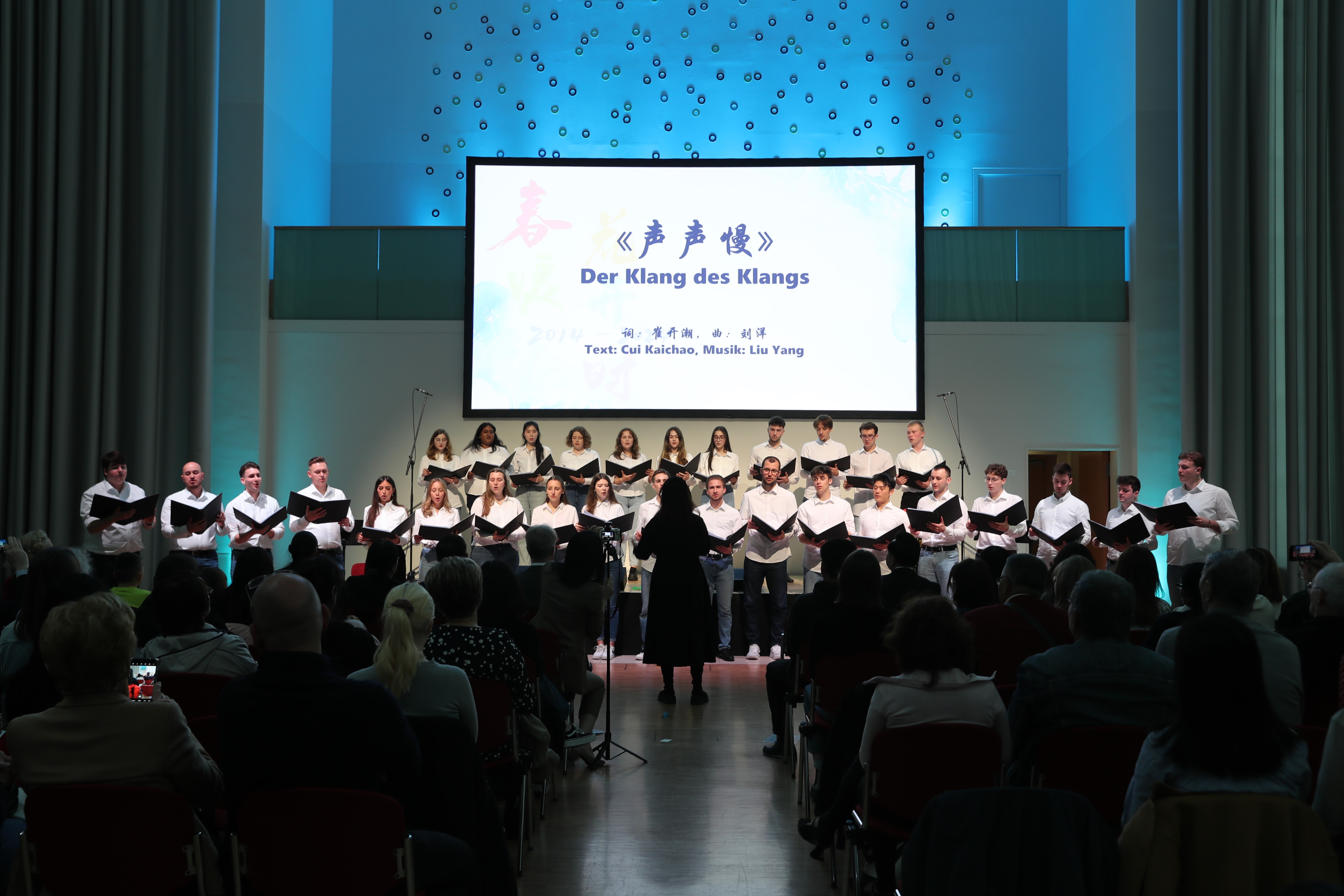 这是4月27日在德国埃森市拍摄的德国伯乐中文合唱团成立十周年音乐会现场。新华社记者 杜哲宇 摄