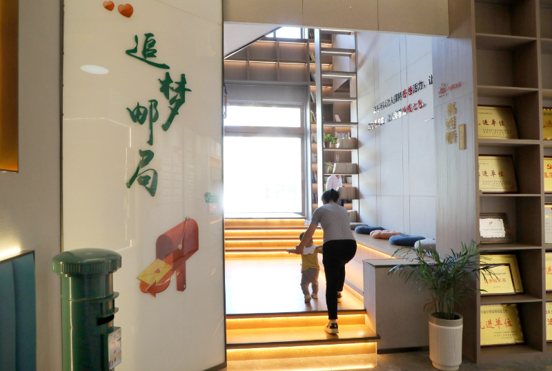 2024年9月29日,安徽省六安市金安区三里桥街道三里桥社区新时代文明实践站,居民从追梦邮局旁边走过。该社区新时代文明实践站创新设立追梦邮局,帮助居民实现微心愿。新华网发 (田凯平 摄)
