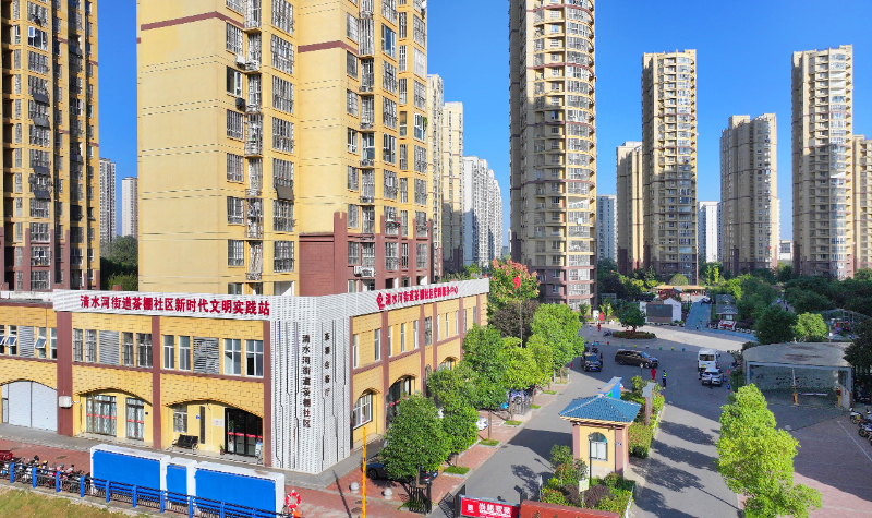 安徽省六安市金安区清水河街道茶棚社区整合辖区资源,依托新时代文明实践站点,搭建“茶棚会客厅”“邱记茶铺”“解铃工作室”等阵地,解决群众急难愁盼。图为2024年9月28日拍摄的茶棚社区。新华网发 (田凯平 摄)