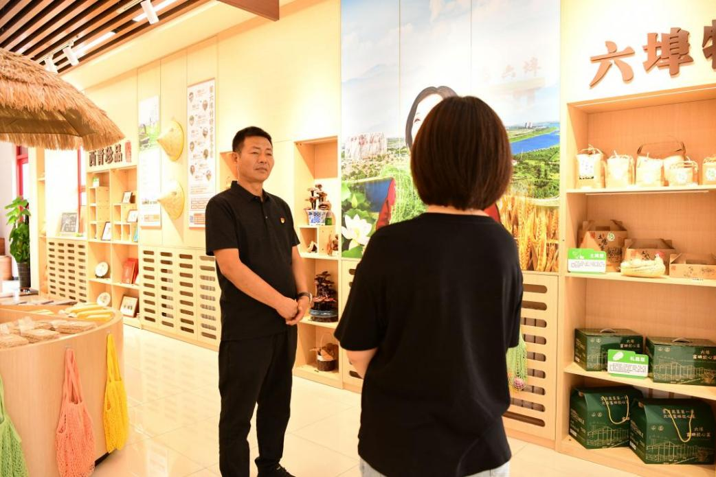 “来第六埠村的游客和学员越来越多,农产品购买需求也越来越高,我们却没有一个接待中心和农产品展销中心。对,我们可以将创富与服务‘融为一体’,打造一个新场所。” 郝庆水利用便民服务大厅的空闲地方,开办了创富工坊。于是,在创富工坊内,一边是干净敞亮的为民服务区域,一边是琳琅满目的特色农产品展示平台,便民服务与村民共富两大功能实现了“默契”融合,第六埠村特色产业发展和乡村治理效能加速升级。