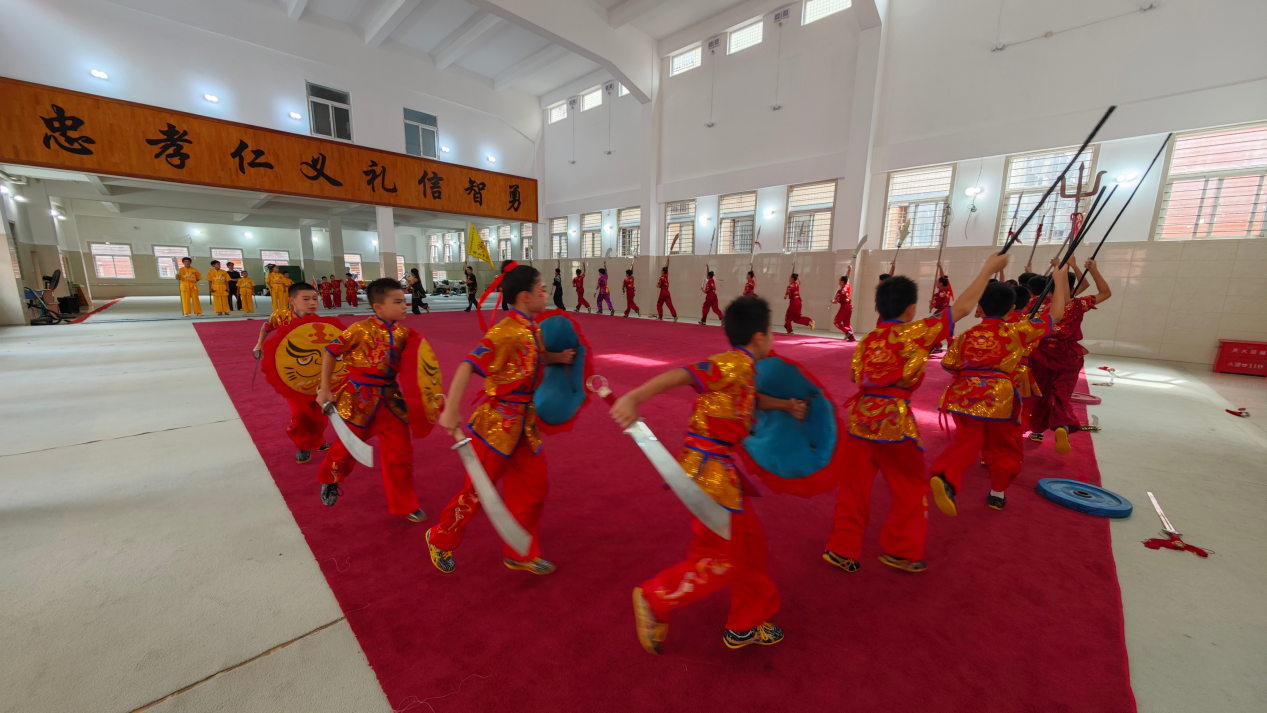 看着孩子们的身影,武术教练陈雪金满是感慨。她10岁开始习武,年幼时就跟着老拳师学套路,2006年牵头重整宋江阵时,队伍只剩二三十人。“现在日常训练有四五十个孩子,展演时能凑齐108人,就是‘宋江阵108将’的样子。”作为社区书院的义工老师,陈雪金最骄傲的不是孩子们练得多好,而是“外来娃也愿意学,传统文化能传下去”。