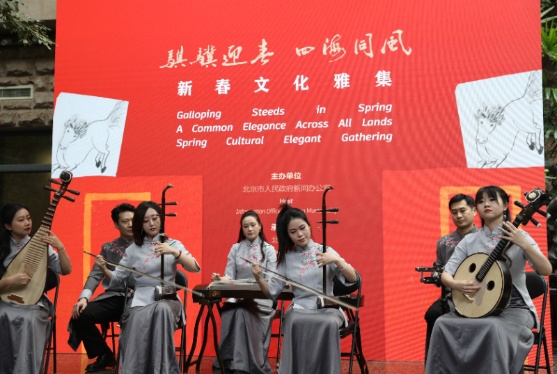 笔墨含春韵,骐骥迎嘉宾。2月9日,由北京市人民政府新闻办公室主办、北京画院承办的“骐骥迎春・四海同风——新春文化雅集”活动在北京画院举行。活动紧扣农历丙午马年的新春主题,邀请首都文化艺术界代表、国际友人等百余人齐聚一堂,通过文化游园、艺术展览、民乐演出、非遗体验等形式,在墨香雅韵中沉浸式感受中华文脉魅力,共迎丙午马年新春。(记者 林凤清)